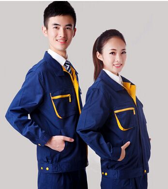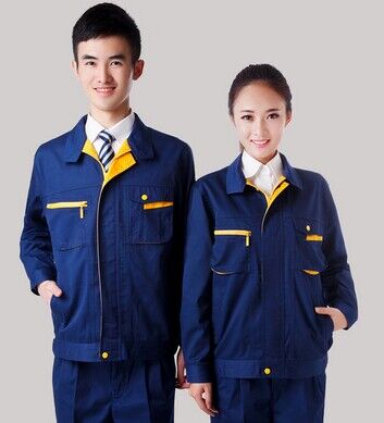 JL-QD249東莞工作服 以深藍(lán)色為主色,胸前采用黃色搭配,醒目,工業(yè)感強(qiáng)。前兜撞色拼接,走線細(xì)致,實用性強(qiáng)。左中腰間口袋均采用雙層設(shè)計,傾斜線條,穩(wěn)重大氣