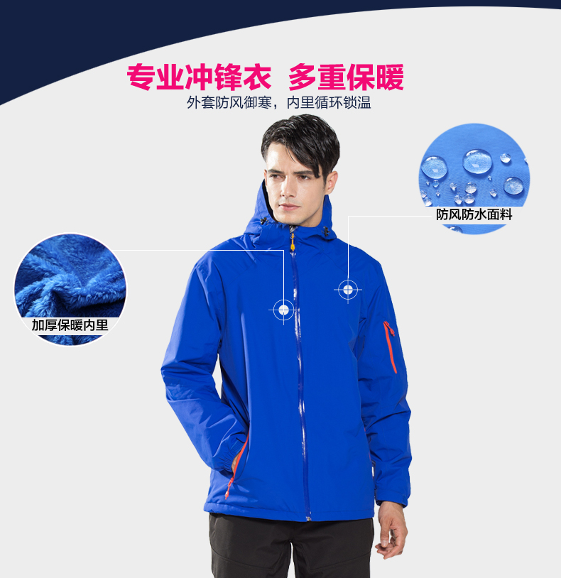 廠家直銷戶外服裝沖鋒衣三合一防水保暖工作服定制JL-570